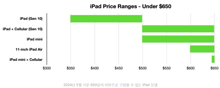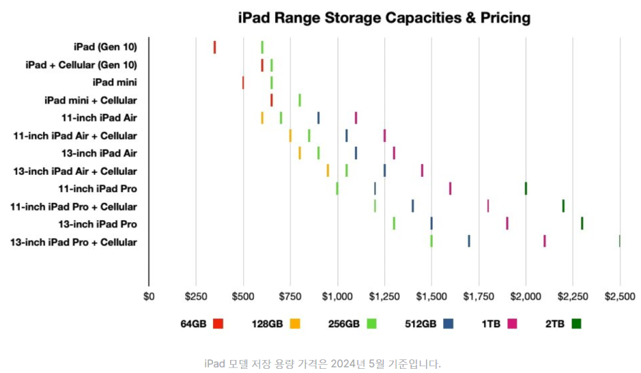 2024년 5월 기준 iPad 가격 정보